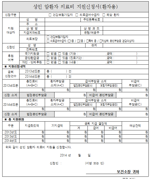 - 암치료비 지원 신청서 1부 > 다운로드